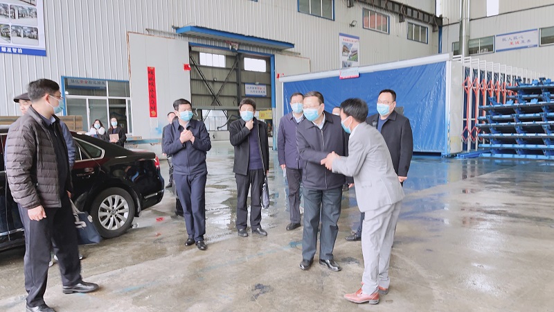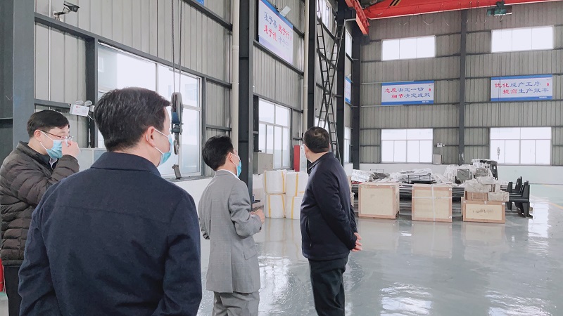 荣耀体育官方注册机械董事长向领导介绍介绍项目概况,随后,大家一同参观车间的生产工艺以及半成品